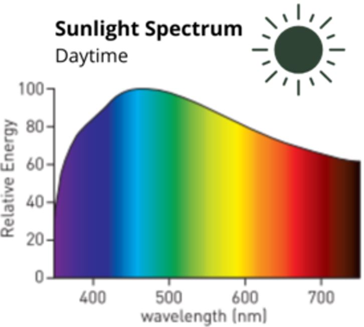 The balance of these different colors also varies throughout the day. For example, in the morning, there is less blue light and more red and infrared, while at midday, there is more blue light and UV. As sunset approaches, the balance shifts again to higher amounts of red and infrared.